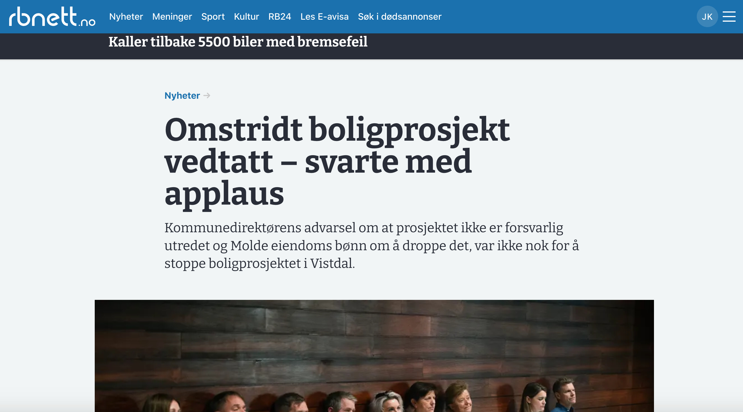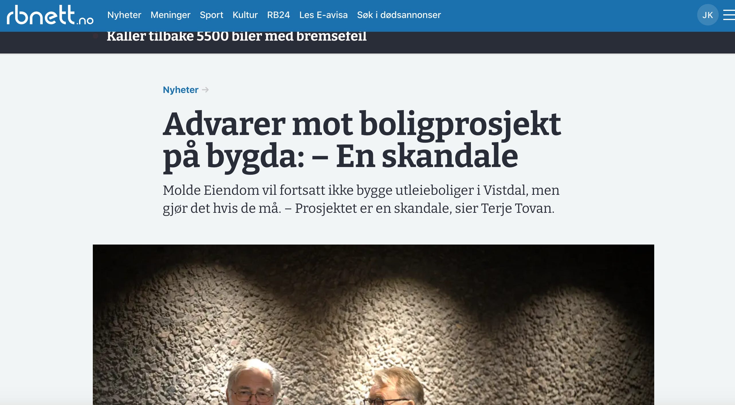 – Prosjektet er en skandale. Vi har fra dag én sagt at det strider imot våre vedtekter og at de økonomiske forutsetningene ikke er forsvarlige. Molde Eiendom KF skal drive utleie av boliger med tilvisningsrett, altså for folk med spesielle behov. Dette er helt ordinære utleieleiligheter, som vi ikke vet om vi får leid ut, og og initiativtakerne legger til grunn en månedspris (8.000 kr) på det dobbelte av hva som er vanlig i Vistdal. Slik saka er utformet, har den ingenting med Molde Eiendom å gjøre, sier han til budstikka.