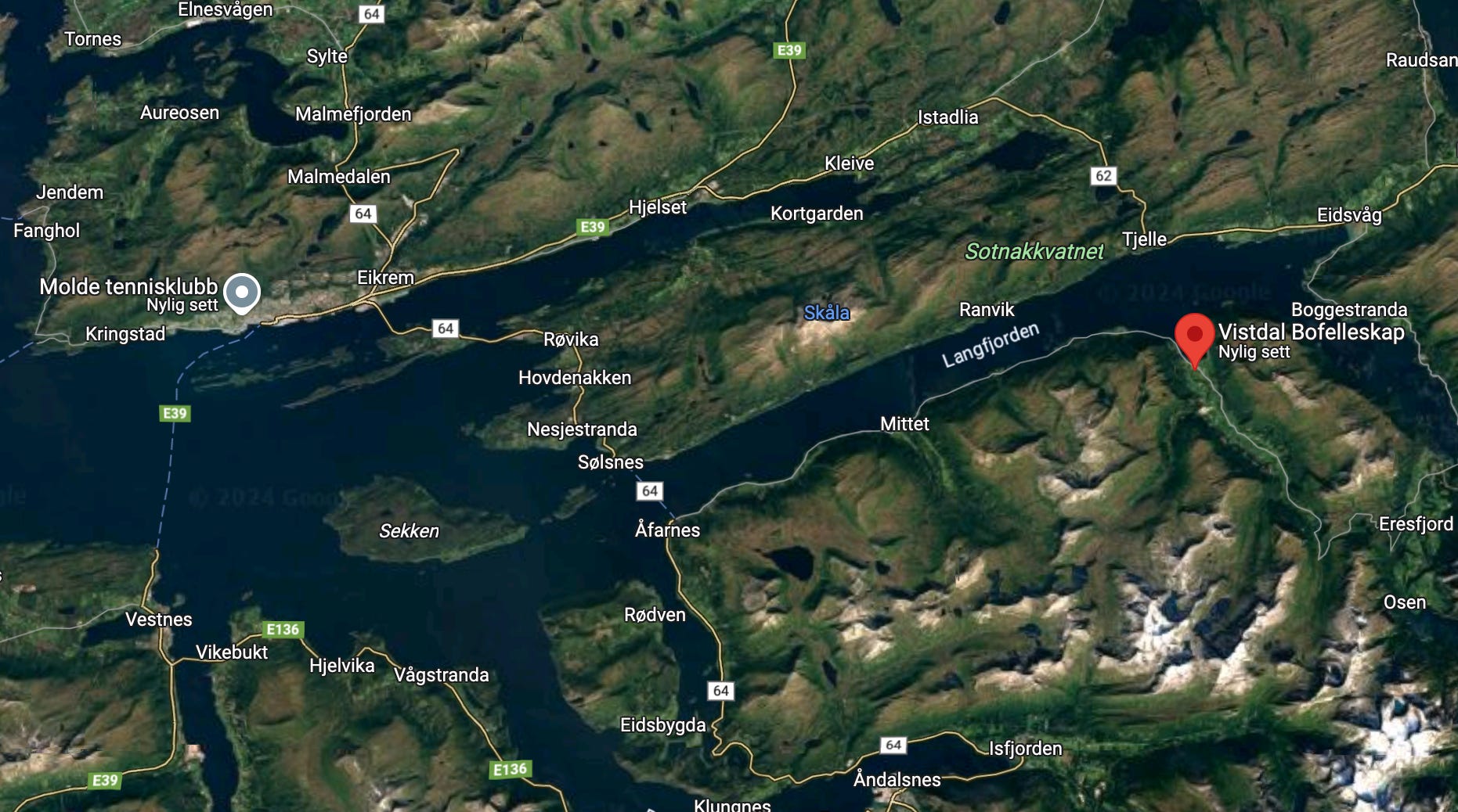 Og her er Vistdal og de tidligere omsorgsboligene plassert i en geografisk kontekst: