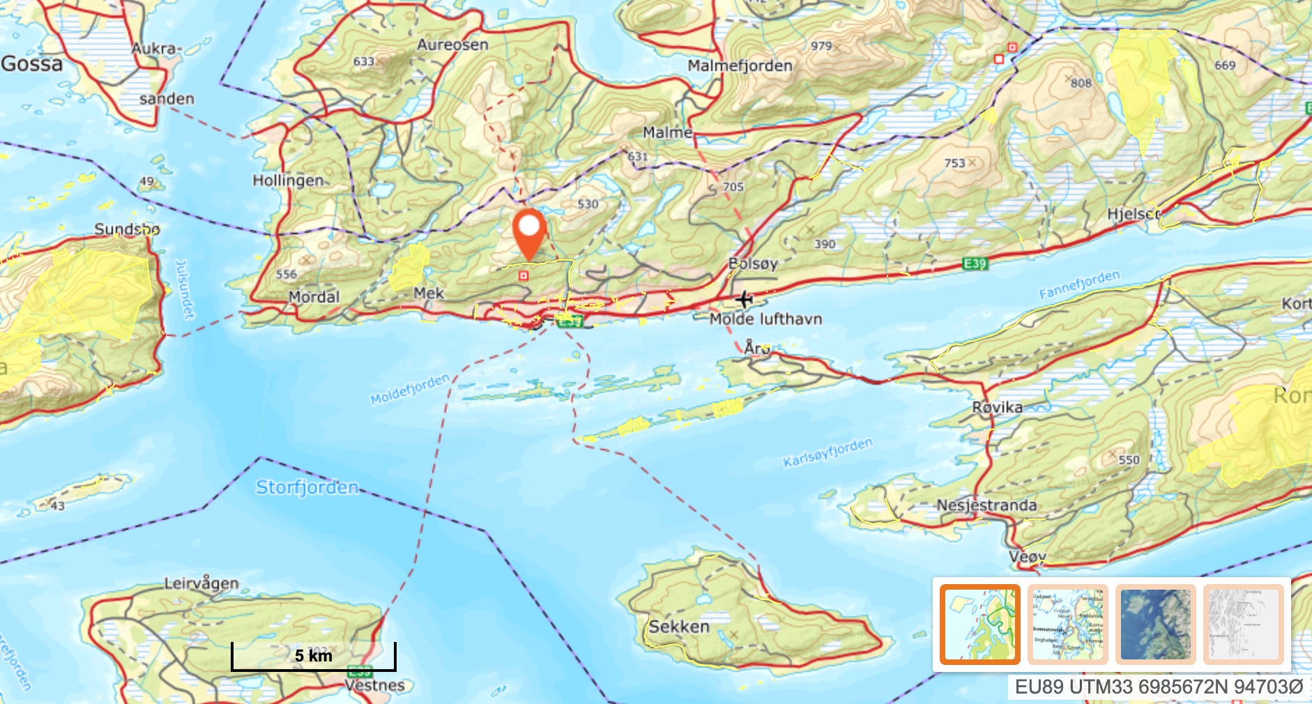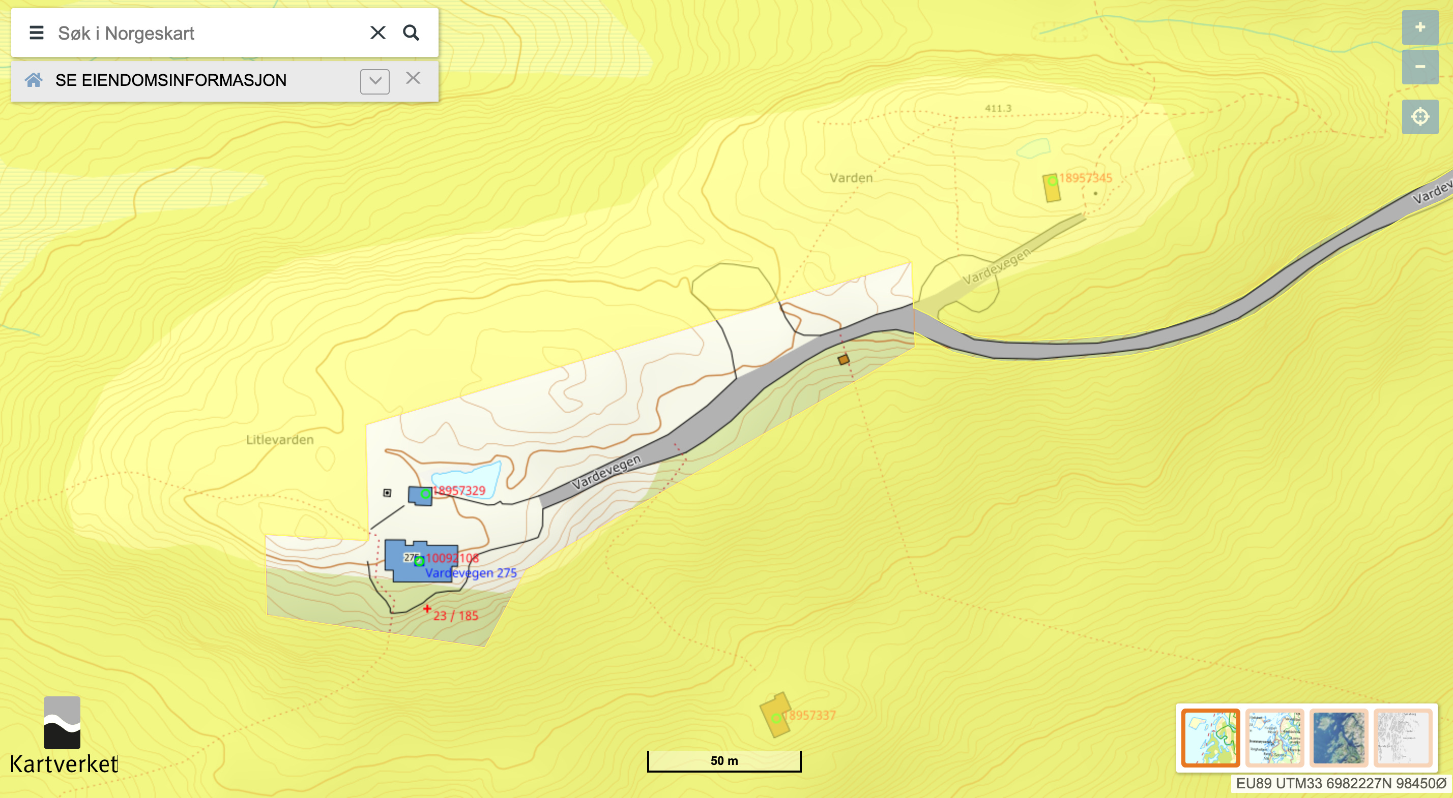 Under følger noen flere kartutsnitt fra Statens kartverk.