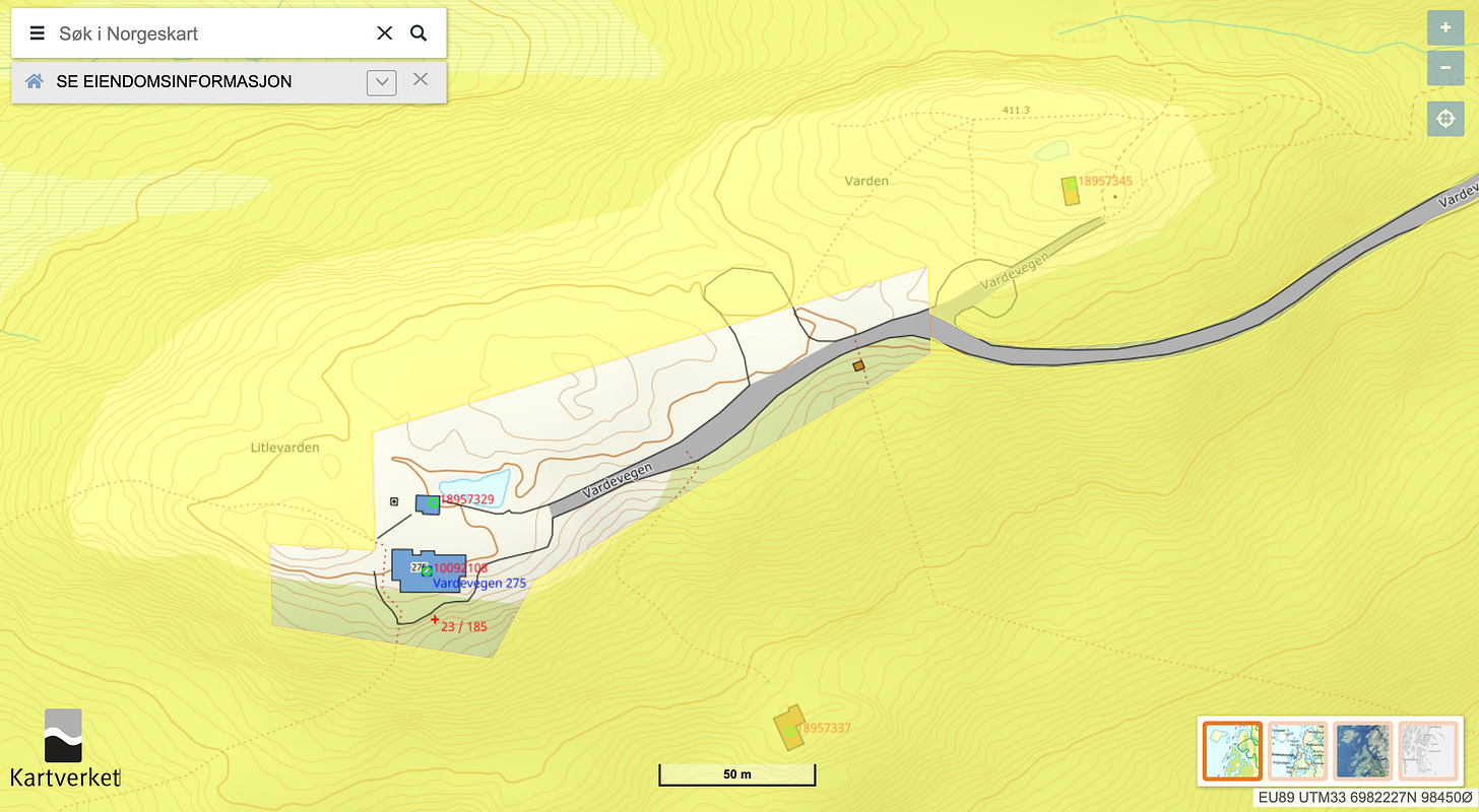 Dette er matrikkeldata, altså de offisielle opplysningene vi har i Norge om eiendomsforhold: eiendomsteiger og grensemarkeringer.