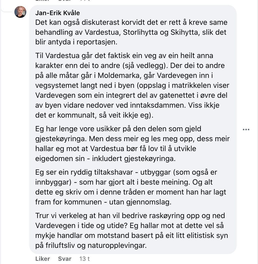Jo mer jeg leser meg opp på denne saken, jo mer dras jeg mot at Vardestua bør få lov til å utvikle eiendommen sin - inkludert gjestekjøringen.
