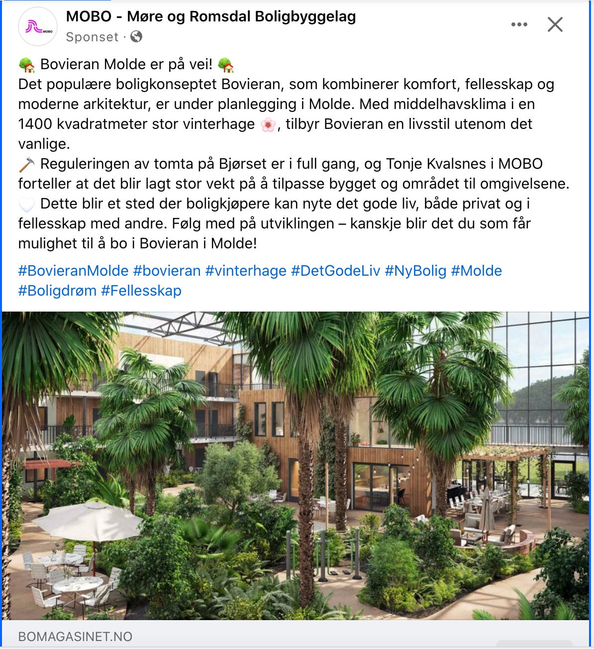 Mobo ønsker å etablere boligkonseptet «Bovieran» på tomten sammen med utviklingsselskapet Bovieran Norge AS gjennom et felles prosjektselskap, Bovieran Molde AS. Boligkonseptet organiseres som borettslag tilknyttet Mobo.