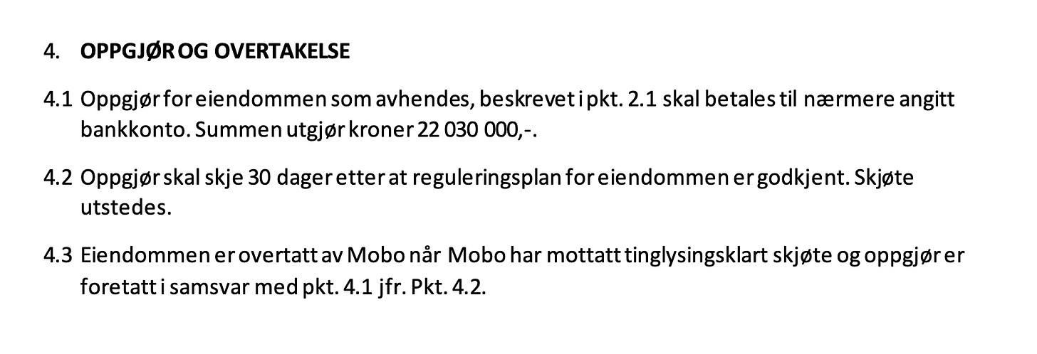 For Wilhelmsen & Co. har ikke engang betalt for den 9,5 mål store eiendommen. Nei, for det skal de gjøre når reguleringen er GODKJENT.