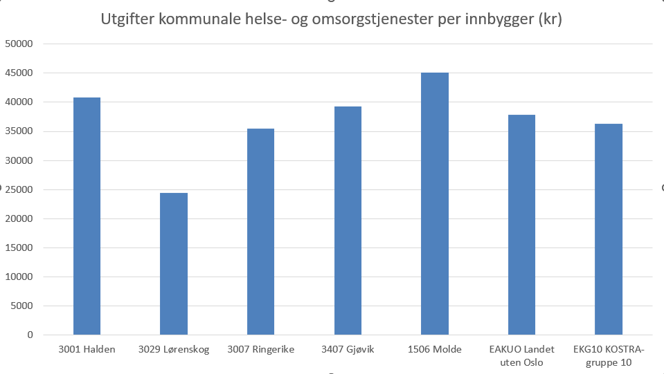 Administrasjonen og posisjonen hevder jo at vi driver så dyrt. Så hva med de kr. 45153,- som alltid blir trekt frem i den diskusjonen? Det vi i Molde bruker på Helse- og omsorg pr. innbygger?