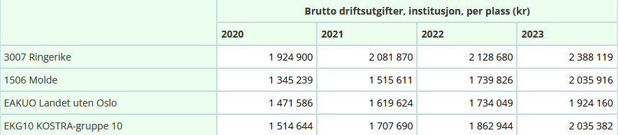 Kanskje de på Ringerike er litt flinkere enn Molde i å holde utgiftene nede på HO-sektoradministrasjon, PwC-innkjøp, helsebiten osv. - og ditto rævva på kostnadskontroll ute i felten - i institusjonene?