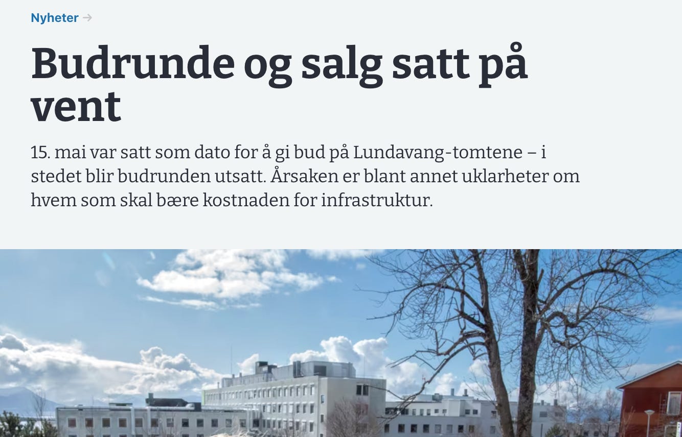 – Vi hadde håpet planarbeidet hadde kommet litt lenger, og det er en forsinkelse i forhold til planprogrammet. Men vi tar opp igjen salget etter sommeren, og for oss er det ikke viktig om det blir solgt nå eller til høsten. Det viktigste er at det blir solgt på en god måte, og at det legges til rette for økonomisk bærekraft for en kjøper av eiendommen. (…)
