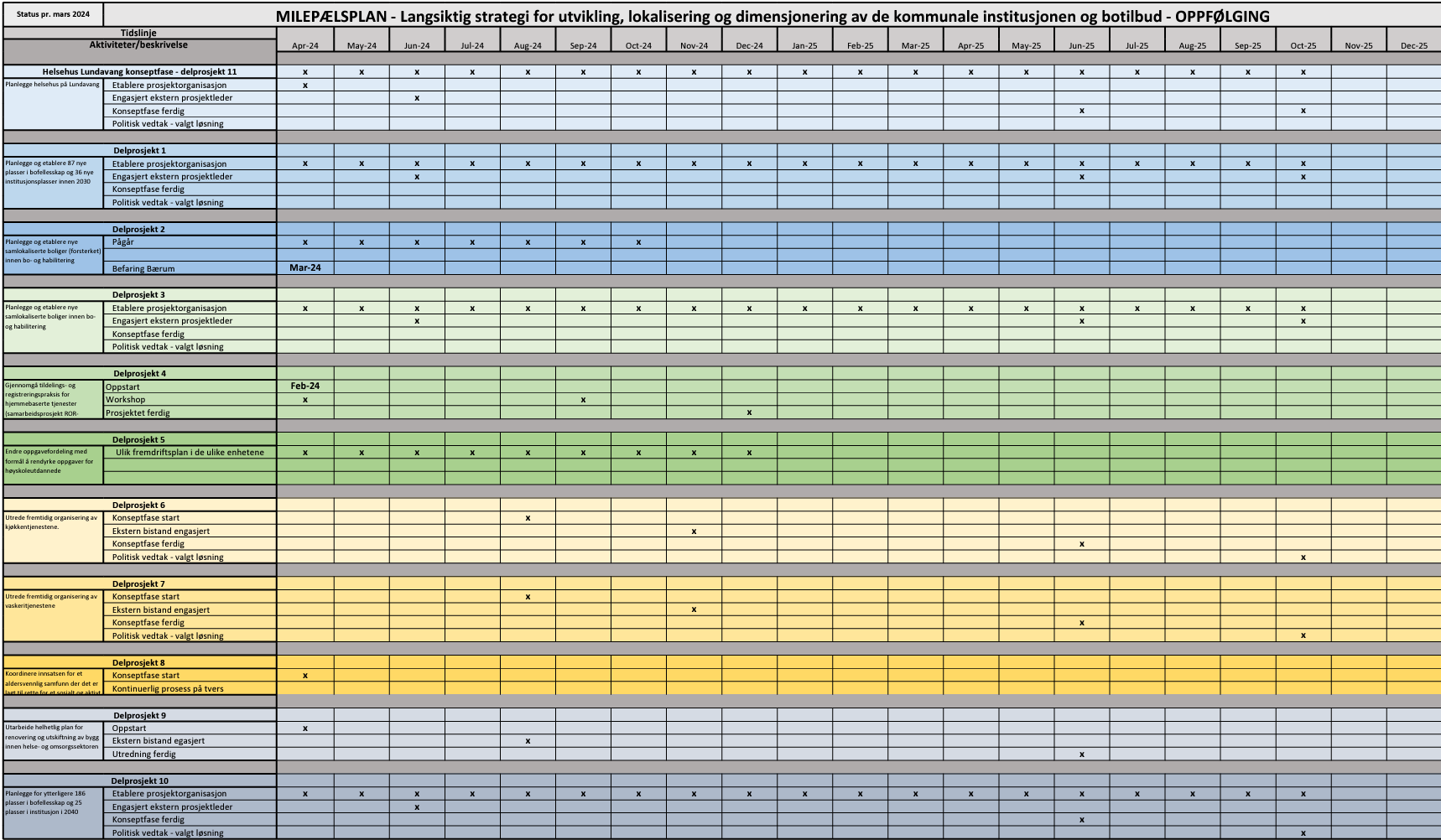 Milepælsplan (som vist over)