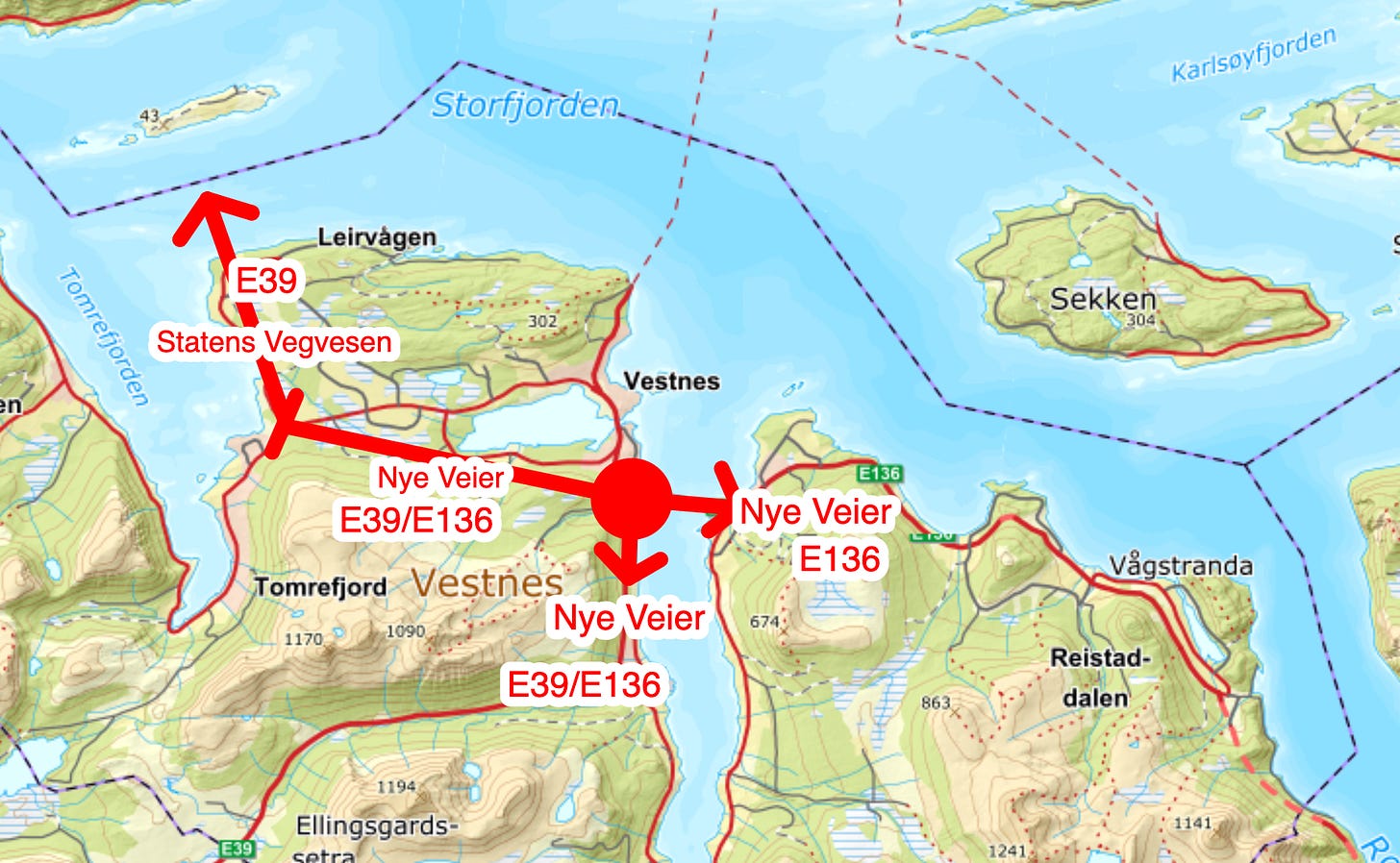 Legg merke til at SVV og Vestnes kommune tar det for gitt at ny veg Remmen - Vik blir arm av E136. Hvem skal bygge denne?