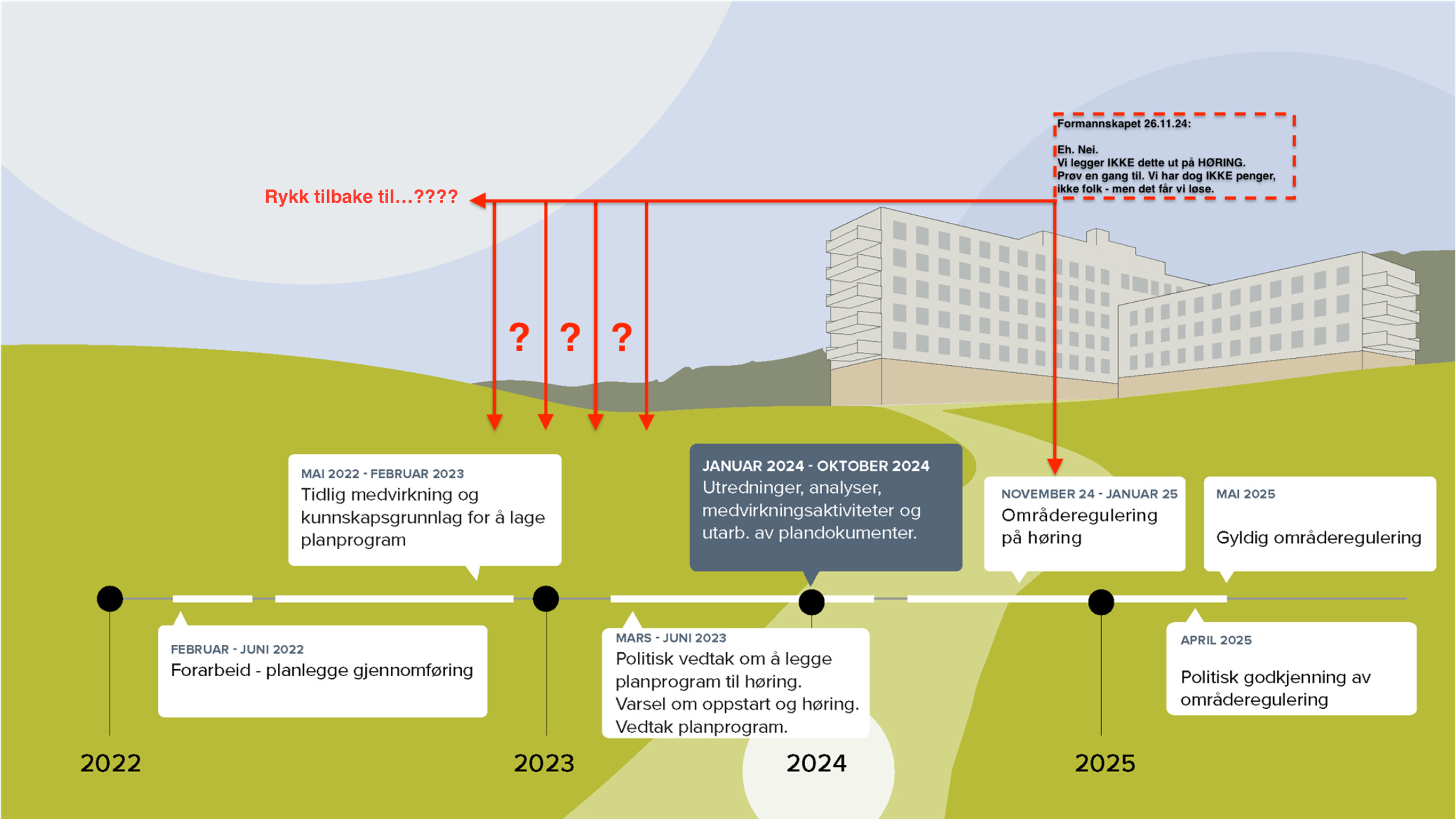 (…) Vi i administrasjonen mener at prosjektgruppa har svart ut planprogrammet..