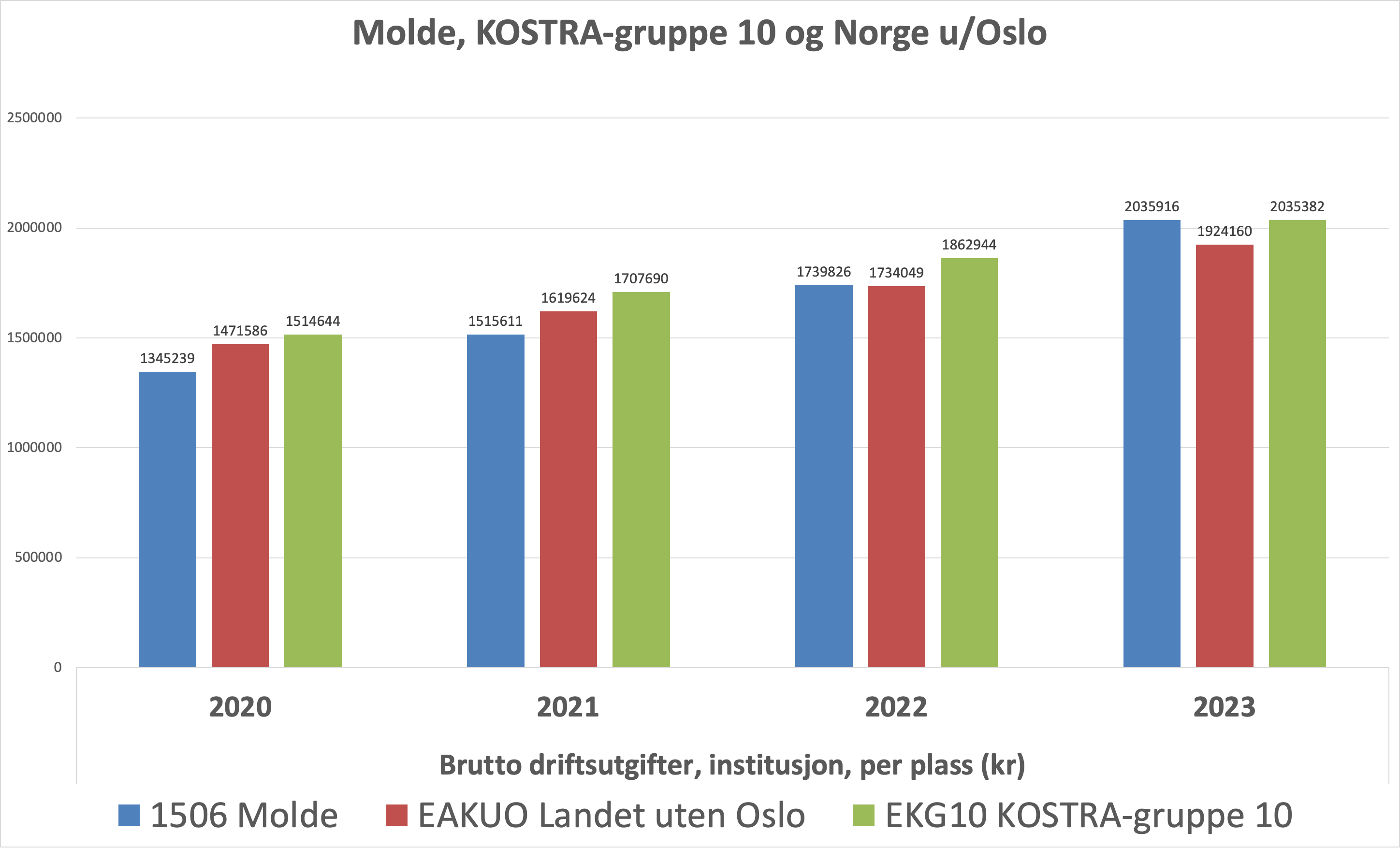Det er jaffal ikke noe å si på det KOSTRA (og vi forholder oss BARE til KOSTRA, som han sier, T. Dahl) kaller “Brutto driftsutgifter, institusjon. Per plass (kr)”.