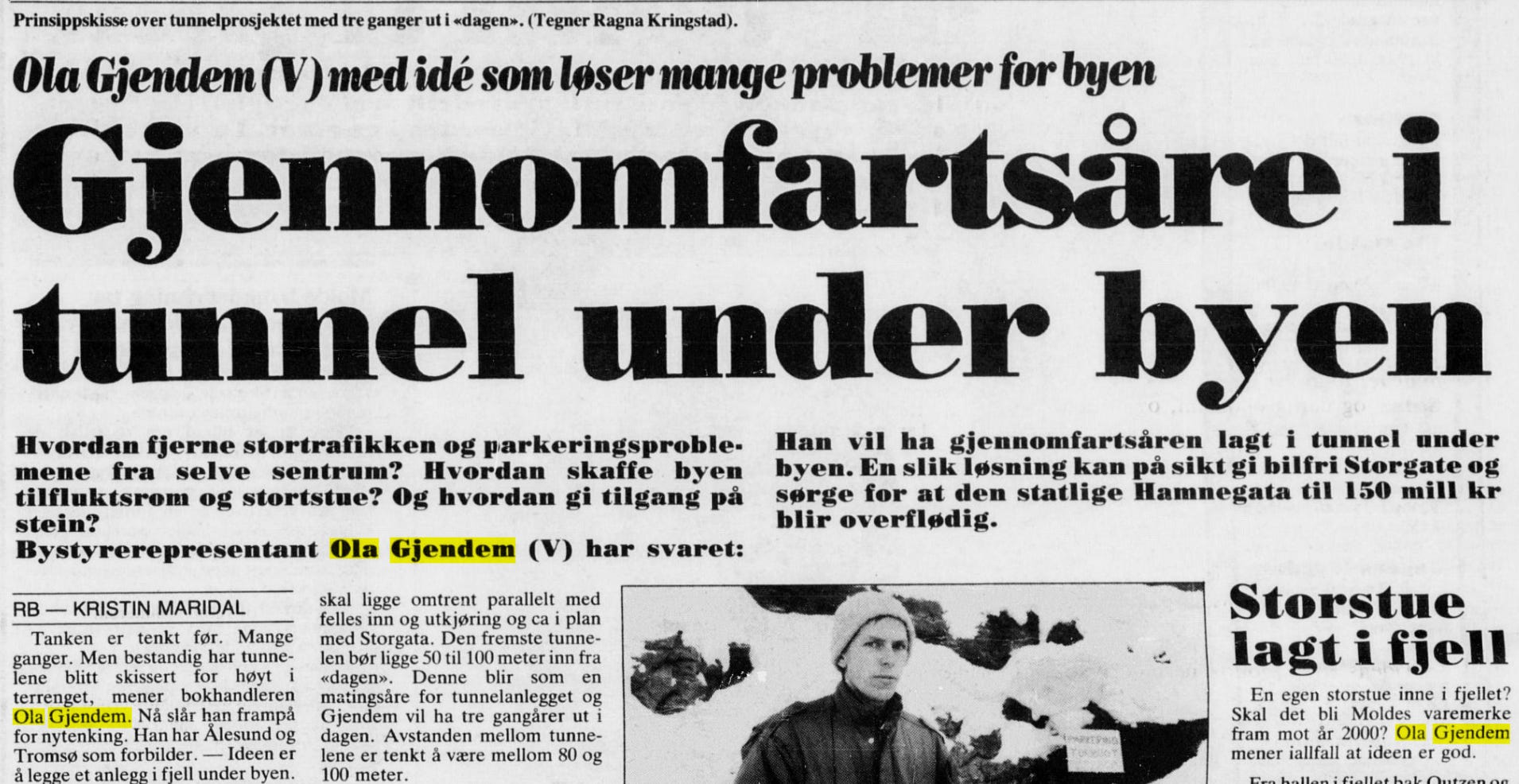 [1] Da Molde fikk "Ola-Hola" (RB/Lillebakk 2017), og Gjennomfartsåre i tunnel under byen (RB/Mariadal 1986) (via Nasjonalbiblioteket)