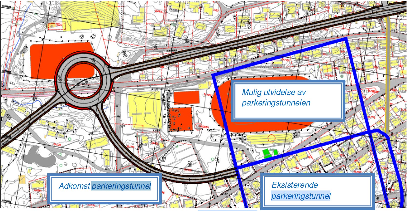 Som om ikkje dette var nok: Ei slik utviding av parkeringstunnelen vil også løyse mykje av parkerings- og tilkomstproblematikken i området rundt museet, Idrettens hus og Træff-huset.