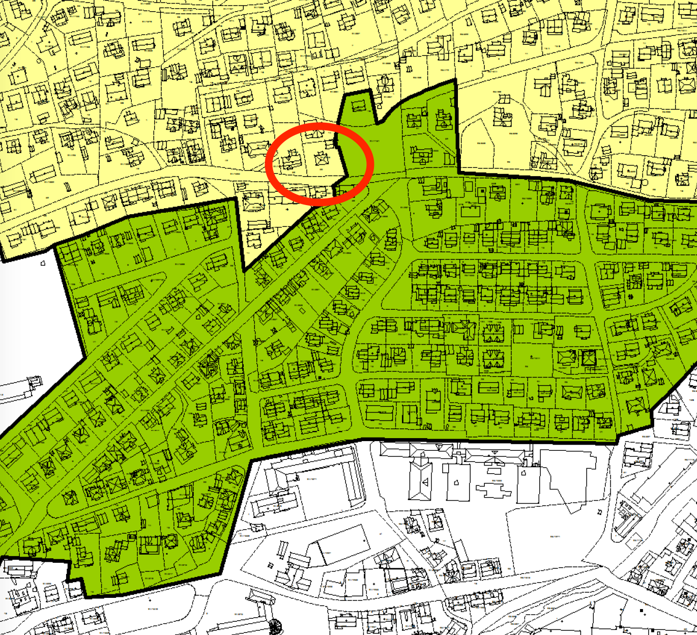 Den aller øverste naboen i grønn sone (se kartet) var i et tidlig forslag ikke tatt med som grønn. Det var heller ikke de tre eiendommene på østsiden av krysset.