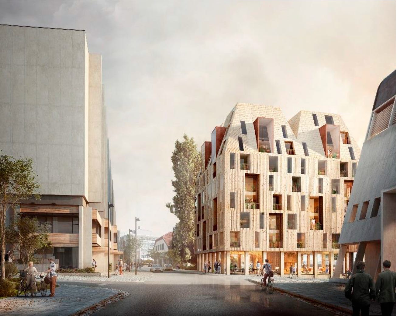 Som om en slik for-the-record-oppfordring betyr noe som helst. Utbygger har jo allerede kommentert samspillet med gjenreisingsarkitekturen, samt den øvrige stedstilpassingen.