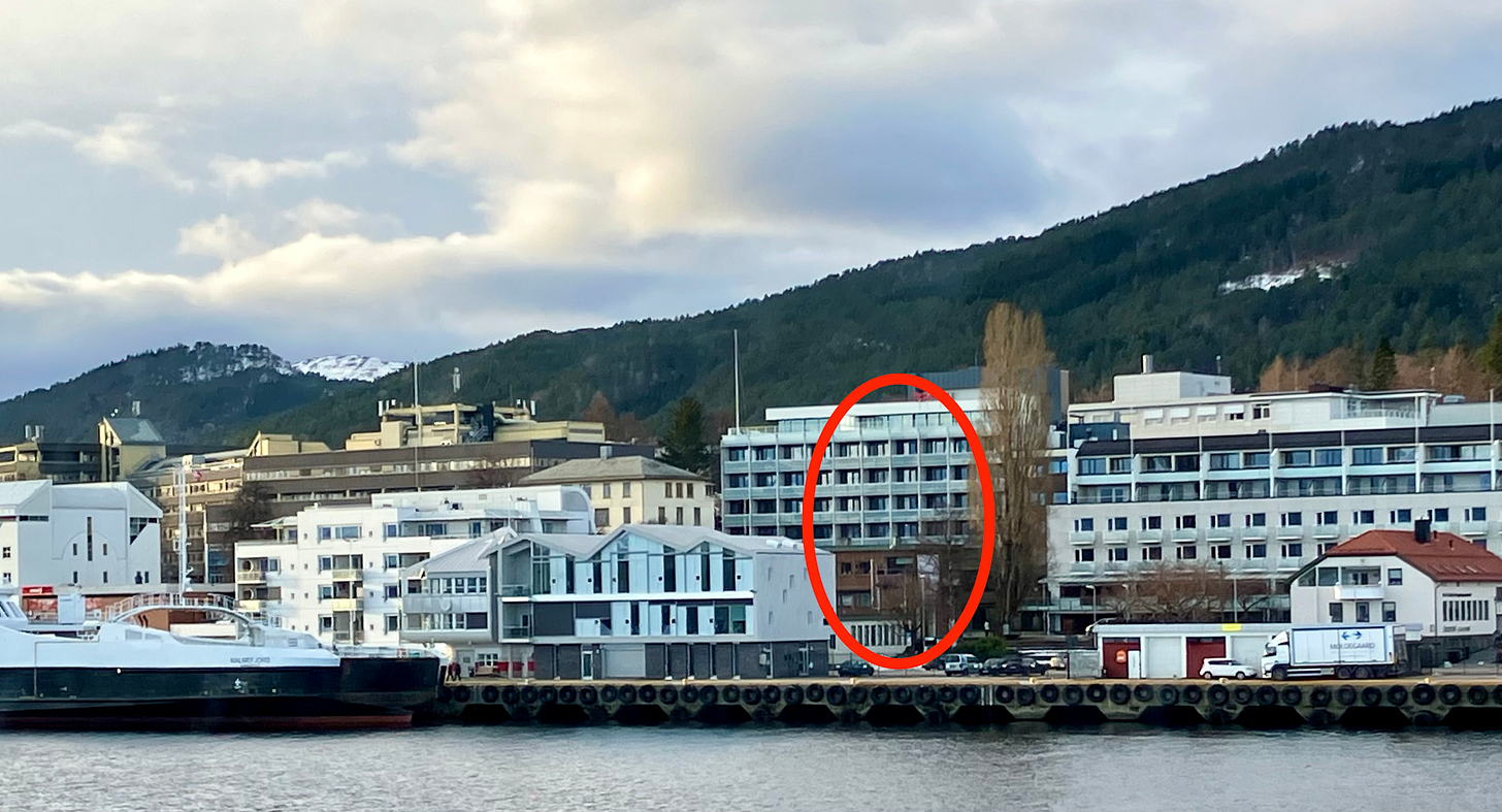 Den brune bygningen som er markert på bildet er Storgata 4, den såkalte Tollboden. [1]