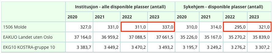 Men har HO-byråkratene i Molde kommune rapportert feil til KOSTRA, da? Hvordan har de klart å dra opp antallet “sykehjemsplasser” (som er temaet her) i 2023 opp til 321?